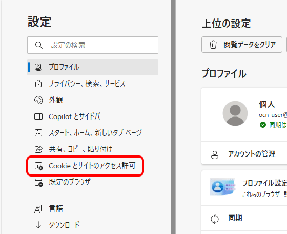 - Microsoft Edgeを再起動し、OCNのWebメールやOCN マイページへのログインをお試しください。