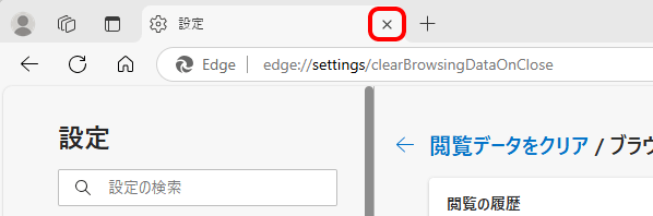 - [×タブを閉じる]をクリックして[設定]画面を閉じ、Cookieの設定確認は完了です。